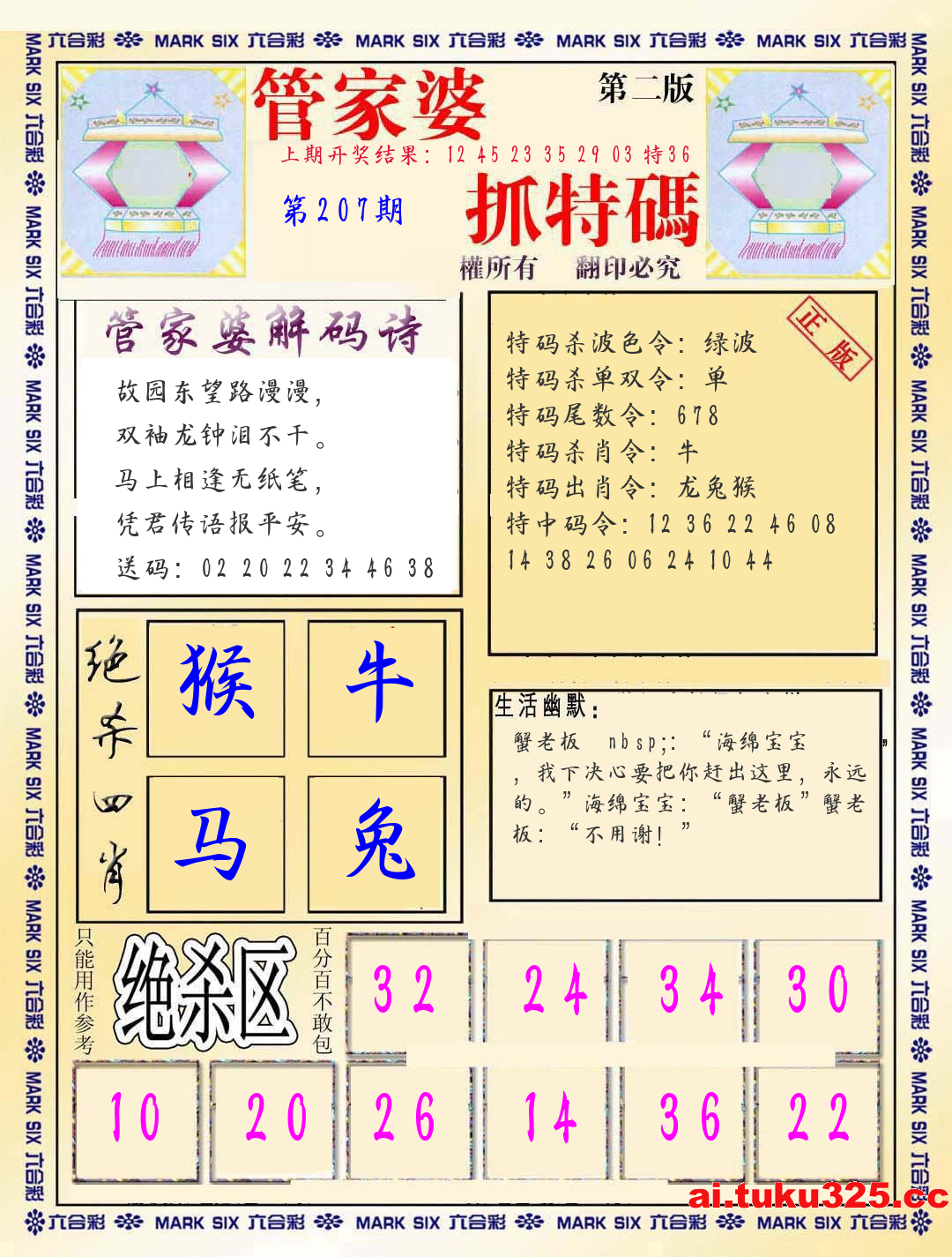 新新彩下半场【六尾出特】