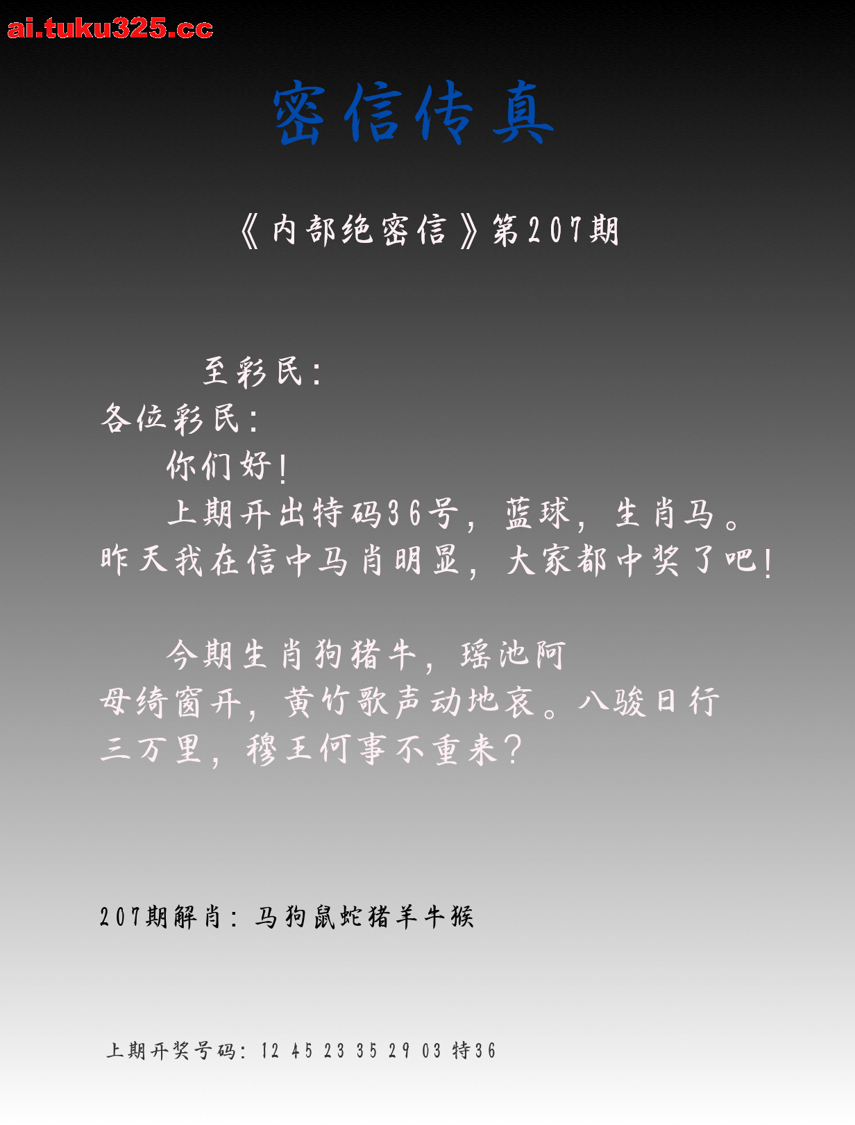 第323期 牛肖3尾 开:12马